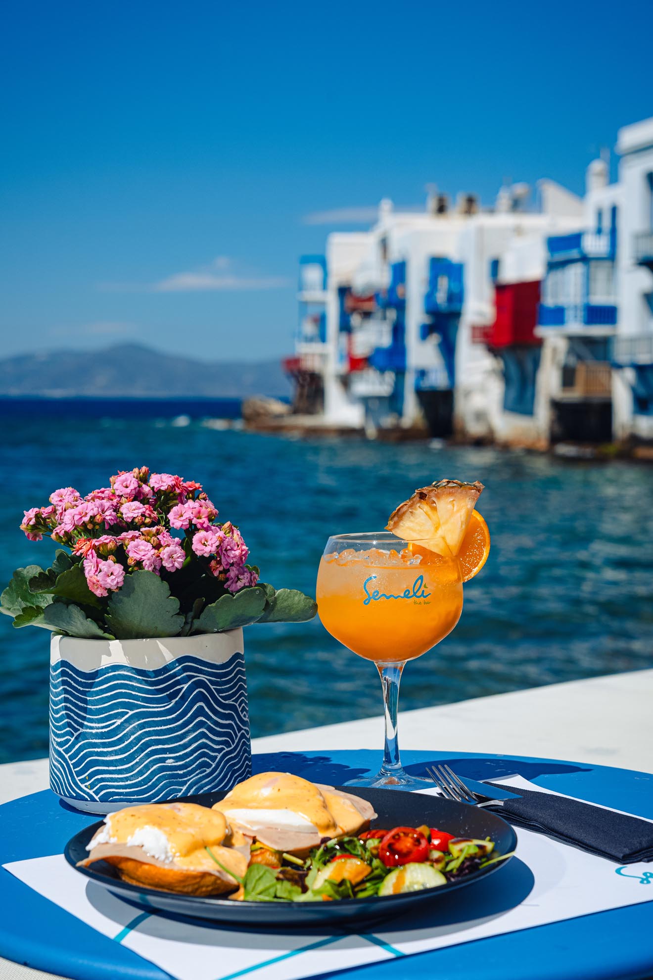 Where the heart of Mykonos beats, in the iconic neighborhood of Little Venice, Semeli the Bar has been an all-day landmark for travelers, tastemakers, and free spirits who want more than just a drink — they want an experience.